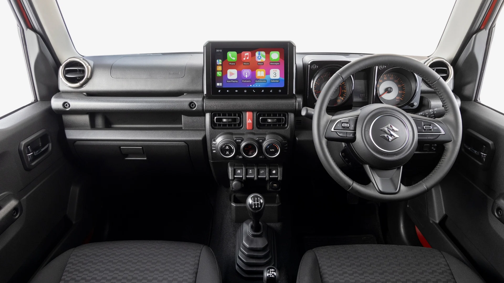 Embark on adventures in extra comfort with the Jimny 5-door. Practically designed controls, integrated steering wheel switches, comfortable seats, and ample cabin space keep you comfortable on every drive. Stay connected with integrated tech and enjoy unobstructed views. Plus, with optimised bumpers and a wide-opening back door, its rugged design is ready for every adventure.