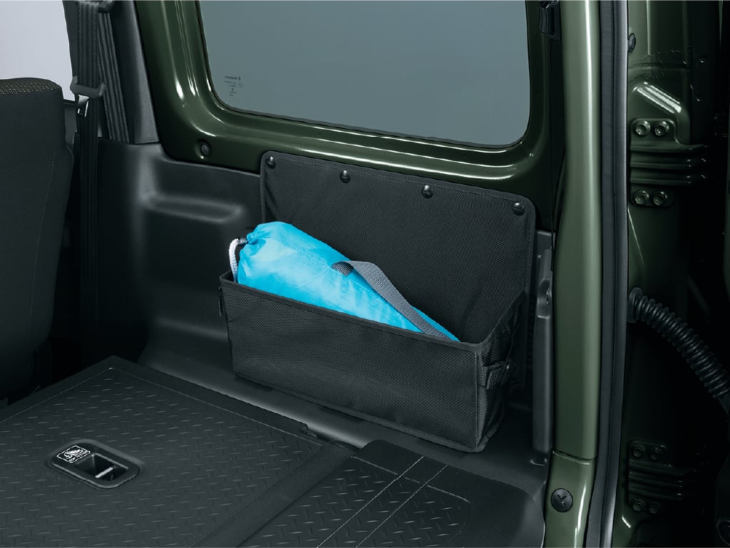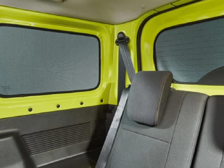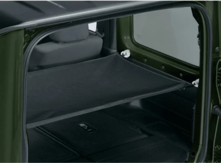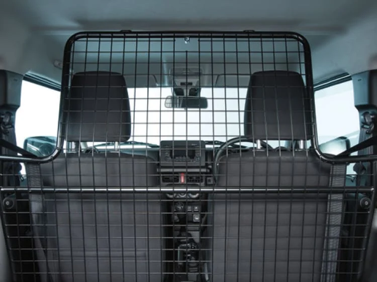 Black powder coated steel, for separating the cabin from the boot when rear seats are folded.